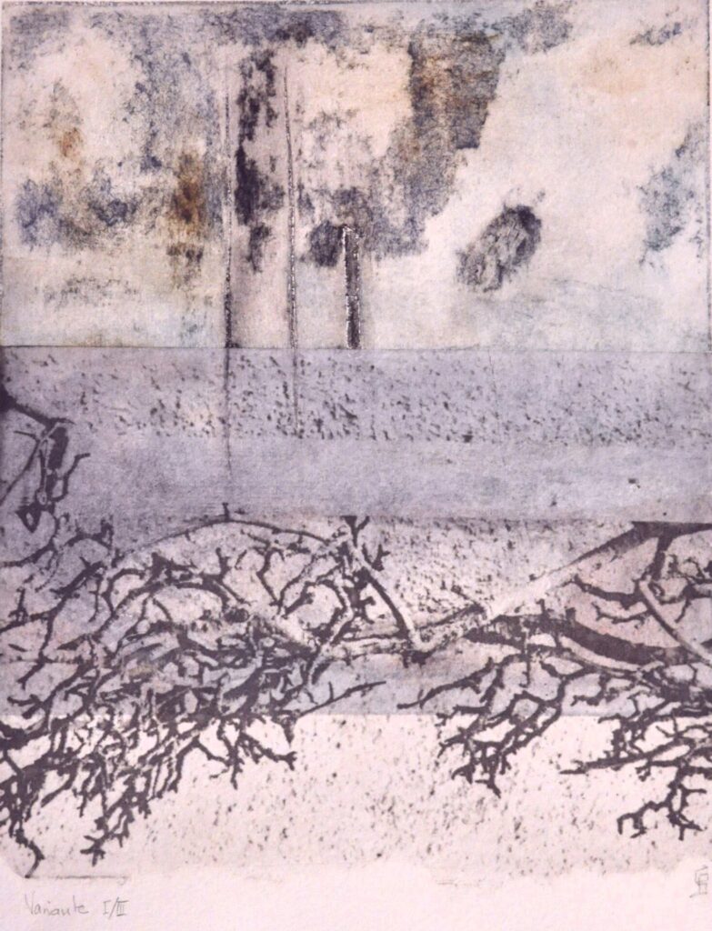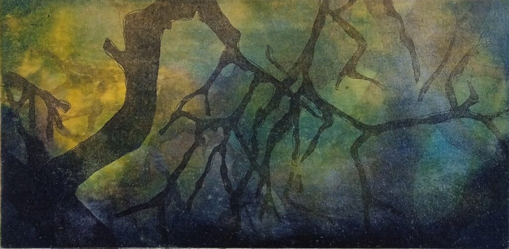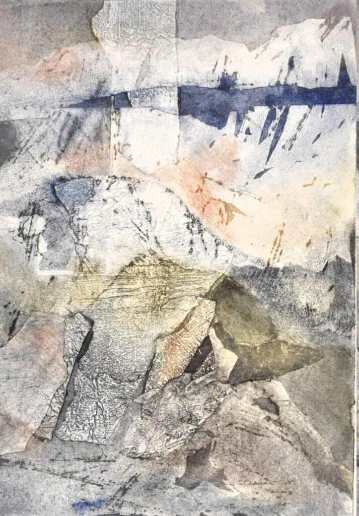 « Ce mot est dérivé du grec «colla» qui signifie colle et «graph» qui signifie dessiner. Sur un support résistant et au format de mon choix (carton ou plexiglass), je vais réaliser un collage de matériaux fins, aux textures diverses. Puis, cette plaque sera encrée et imprimée sous la presse. Vu la fragilité du support d’impression, le tirage est limité, voir unique. »