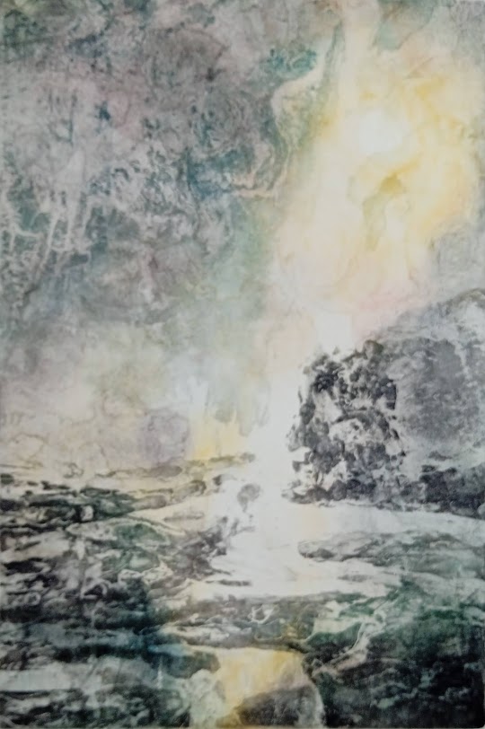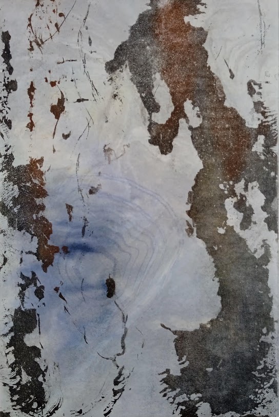 « Dans mon atelier, en dehors des techniques d’impression, j’aime peindre avec de la cire saponifiée. Mon intérêt pour les techniques picturales anciennes m’ont fait découvrir ce médium étonnant. Il était déjà utilisé par les peintres de l’Egypte antique.