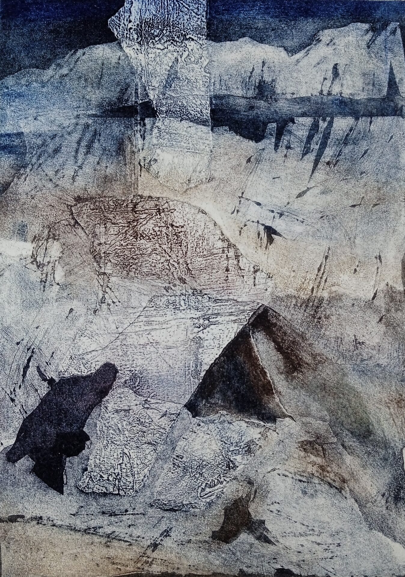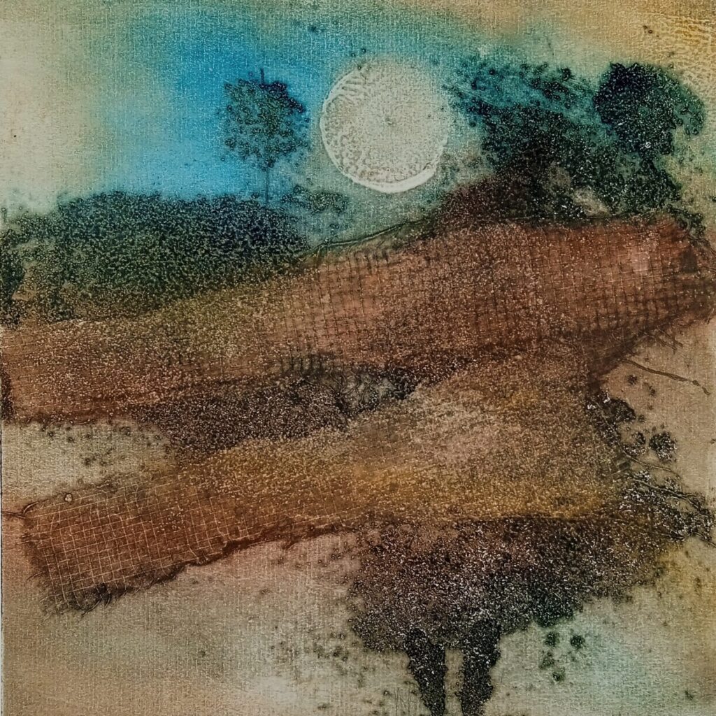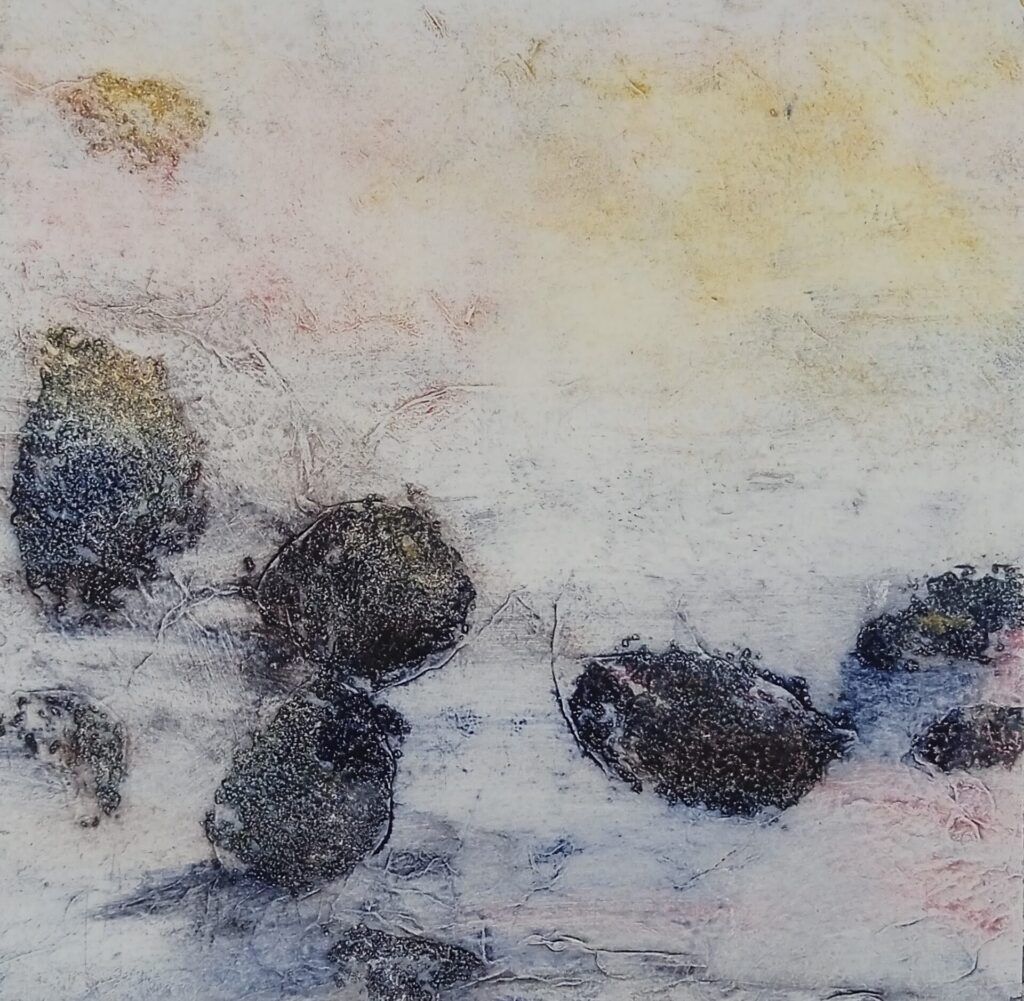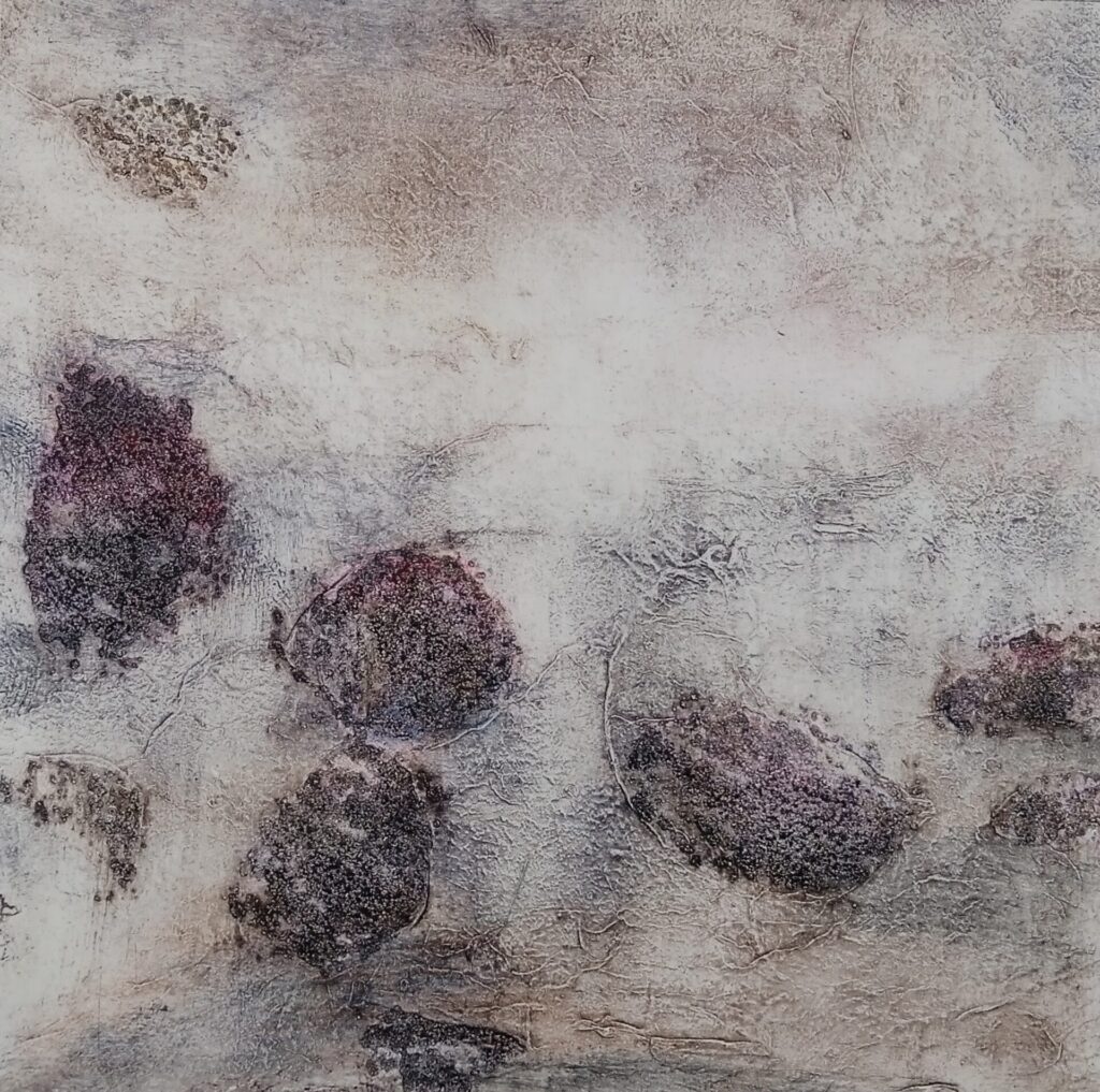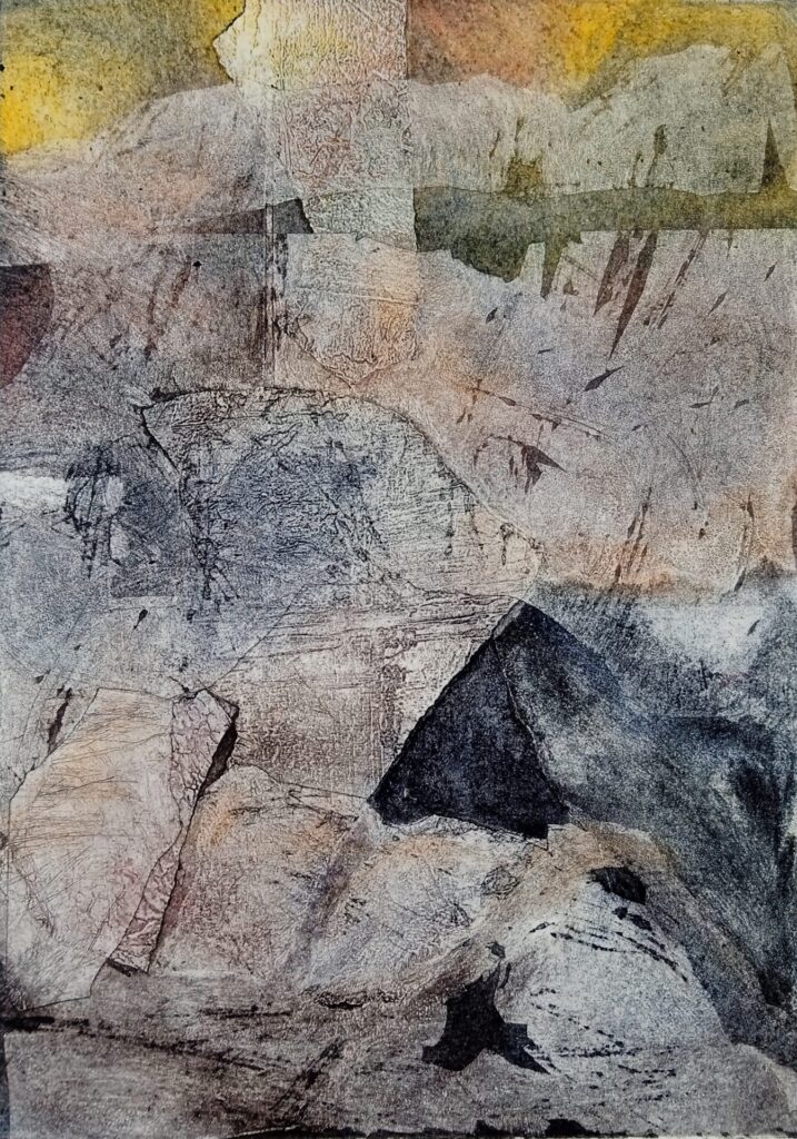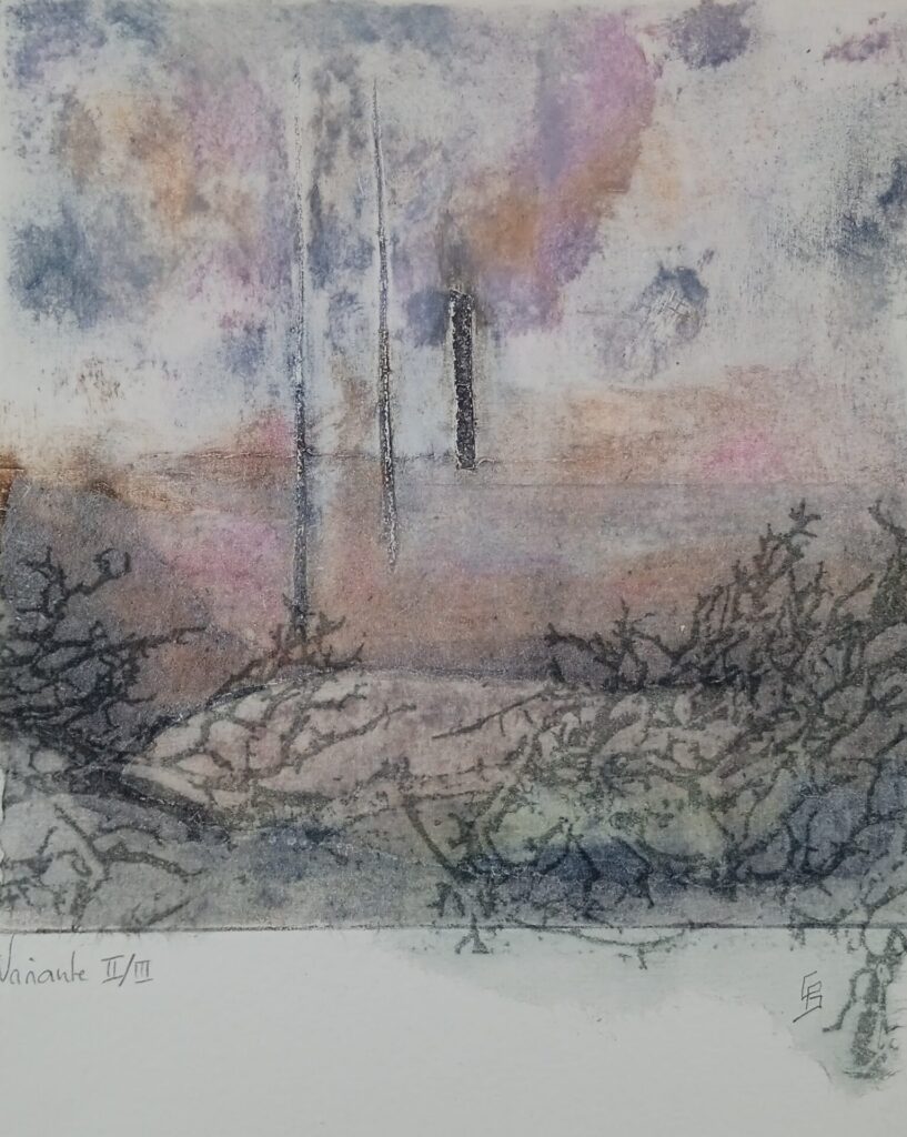 Collagraphie cairns Dimensions 20 x 20 cm Technique collagraphie Variantes 3 Prémonition Dimensions 20 x 20 cm Technique collagraphie Variantes 3 Monde minéral Dimensions 20 x 30 cm Technique collagraphie sur carton Variantes 4 / 6 Paysage Dimensions 20 x 20 cm Technique collagraphie Variantes 4 Lune Dimensions 20 x 20 cm Technique collagraphie Variantes 4